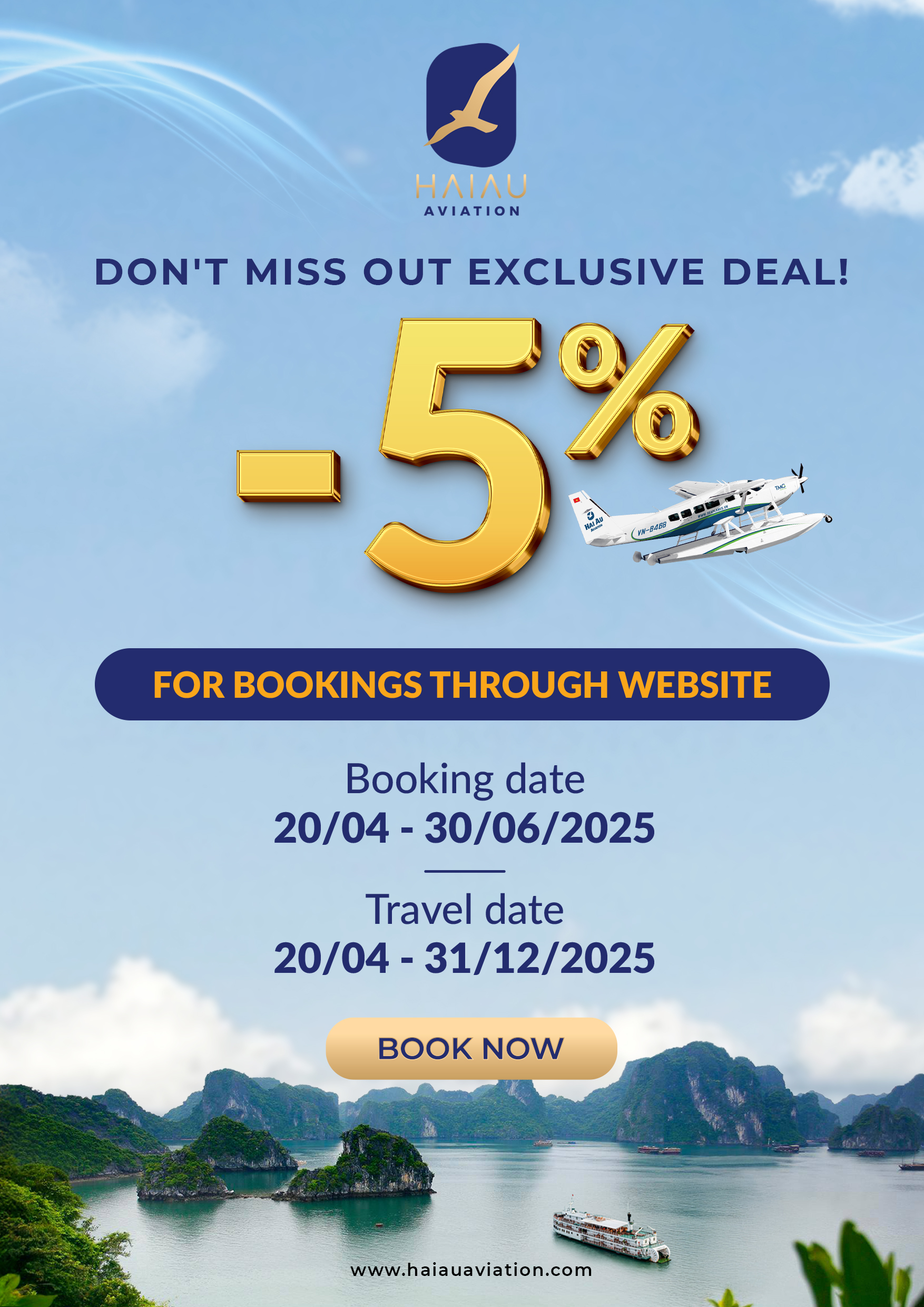 Hai Au Aviation is proud to introduce our newly upgraded website, designed for a better user experience. To celebrate this launch, we are offering a 5% discount for all customers who book and pay directly on our official website.